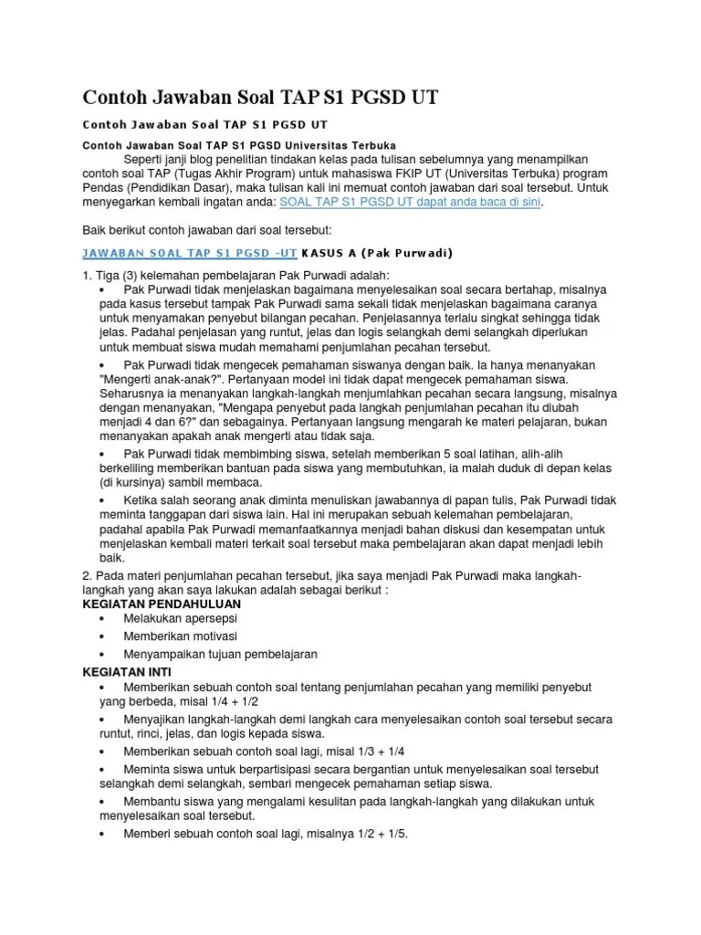 Soal ujian ut pgsd pdgk4106 pendidikan ips di sd. Kumpulan soal ujian universitas terbuka terbaru. Contoh karil ut pgsd karya ilmiah kelas ii pembelajaran . Soal ut pgsd semester 6 beserta kunci jawaban untuk anda yang ingin melihat keseluruhan soal universitas terbuka untuk jurusan s1 pgsd . Soal ut yang kami bagikan pada blog ini lengkap untuk tiruana semester, mulai dari semester 1 hingga dengan semester 10 untuk mahasiswa universitas terbuka .